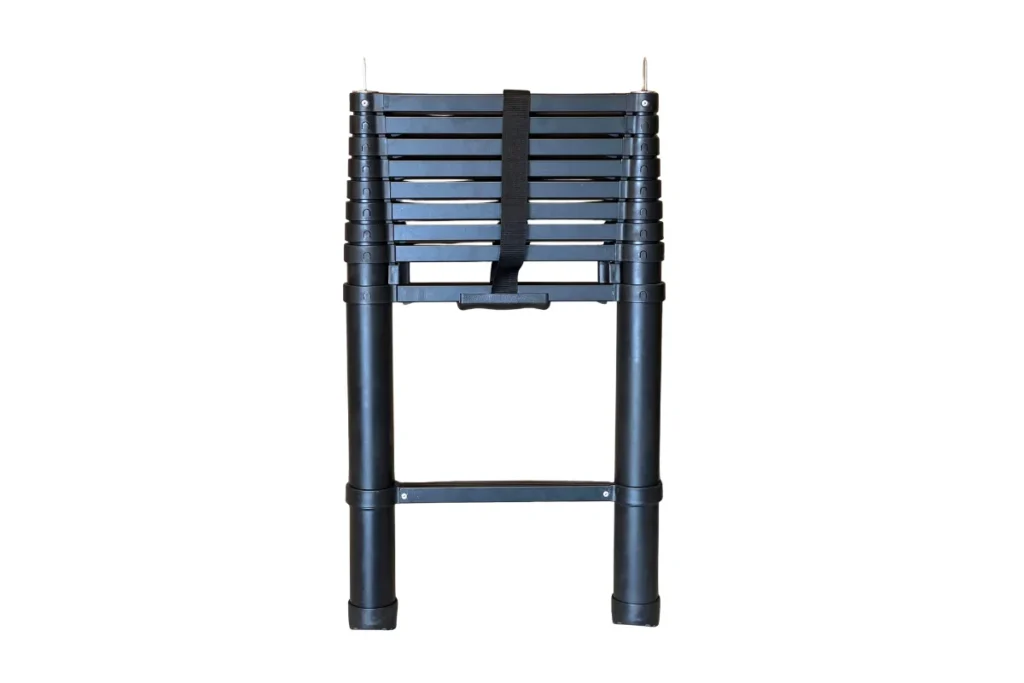 Das Peak XXL wird mit einer robusten, ausziehbaren Aluminiumleiter geliefert, die bis zu einer Länge von 230 cm teleskopiert werden kann und eine Tragfähigkeit von 150 kg bietet. Auf Wunsch sind auch längere Leitern verfügbar. Dank der halbautomatischen Öffnung mit hydraulischen Gasdruckdämpfern lässt sich das Zelt einfach auf- und abbauen, sodass Du schnell bereit bist, Dein Abenteuer zu starten.